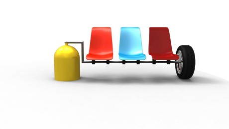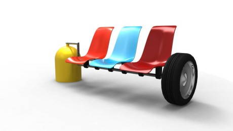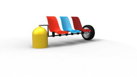 Da ufficio, ruote d’auto, bidoni e altri materiali altrimenti destinati alla discarica. Un’idea non solo per l’idea del riuso di vecchi materiali, ma anche per il tocco di ironia che i designer hanno messo nell’ideare le soluzioni.