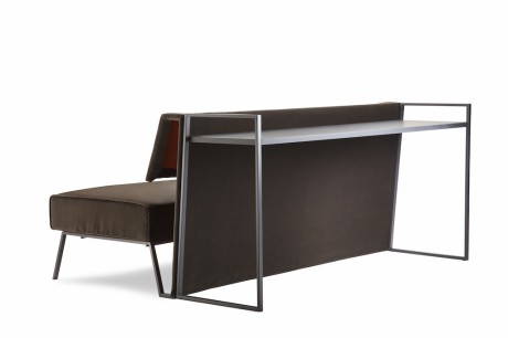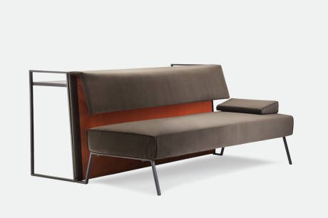 Casablanca, disegnato da Baldessari e Baldessari Per Adele-C, è un elemento d’arredo polifunzionale. È innanzitutto un divano, caratterizzato da una struttura in acciaio verniciato color grigio ferro e da un cuscino di seduta in poliuretano espanso a densità differenziata dal rivestimento sfoderabile. Il rivestimento dello schienale è ottenuto intrecciando tessuti tagliati a laser di diversa colorazione e di larghezza variabile in due varianti di colore, oppure è disponibile in tinta unita. Esiste anche una versione più “classica” in velluto di cotone in 2 colori a contrasto. Il cuscinetto opzionale può avere funzione di bracciolo o di sostegno lombare. Ma è anche una console/scrittoio, sempre con la struttura in acciaio verniciato e il piano in lamiera d’acciaio in finitura mano pesca. Due elementi indipendenti pensati per vivere insieme, con una soluzione che aiuta a guadagnare spazio prezioso in casa, oppure separati. L’inclinazione dello schienale del divano infatti si abbina perfettamente quella della console, così da creare alla vista un elemento unico. Una collezione appena nata ma che è aperta ad ulteriori e successivi ampliamenti o sviluppi. www.adele-c.it