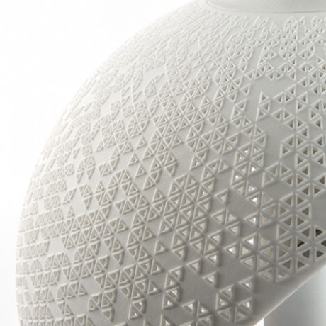Il tubolare e la calotta sono realizzati in poliammide sinterizzato nella variante di colore bianca. La superficie specchiante è invece realizzata in acciaio inox. Supporta sorgenti luminose LED max 18 W.