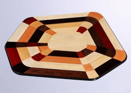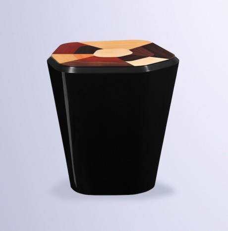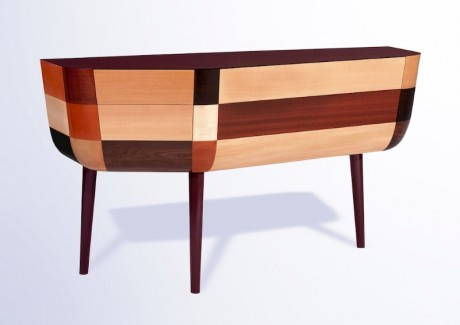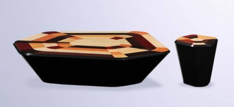 Nascono così cassettiere dall’aspetto rétro, coffee table, tavolini sgabelli e panche poligonali di ispirazione Hawaiana. Un connubio perfetto tra le forme fluide e le diverse essenze e colori dei legni utilizzati.