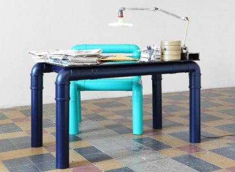 Per questo ci hanno colpito i lavori del designer Niccolò Eugenio Spirito che da sempre nel suo laboratorio trasforma materiali insoliti come tubi in pvc, bombolette spray, chiavi inglesi, taniche e idranti in oggetti d’arredo. Dalle sue mani nascono lampade, sedie, tavoli, tutti realizzati a mano. I tubi in pvc in particolare, con i loro snodi a gomito e imbottiti in poliuretano espanso per dare solidità alla struttura, sono la base per una collezione di arredi lineari, flessibili e colorati. Ecco allora che dalle mani di Niccolò prendono forma la sedia Diabo, la panca Pabo, il tavolino Poli, la libreria Tubro, ma anche un tavolo-scrivania e una slanciata lampada da terra a tre piedi. Semplici, leggeri, ecologici…