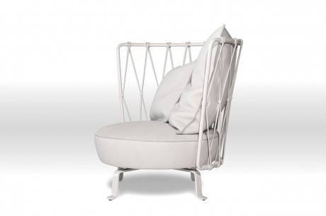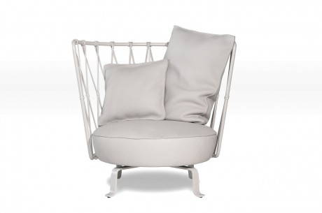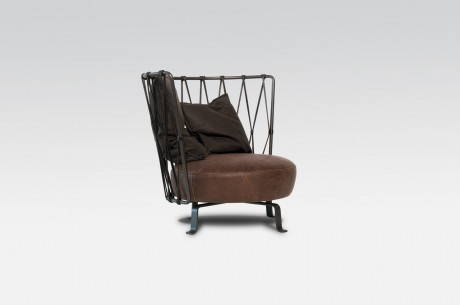 Beatriz ricorda un cestino di vimini, con la sua struttura in legno naturale e il sedile in pelle invecchiata. Un disegno semplice e pulito, arricchito dai tanti cuscini che rendono più confortevole lo schienale. Pedro invece è una poltroncina singola, rotonda e avvolgente. La struttura di queste sedute è simile perché si tratta di forme derivate dalla stessa ispirazione, linee che si ritrovano spesso nell’architettura di Oscar Niemeyer e nel design di Sergio Rodriguez, pionieri del design brasiliano.