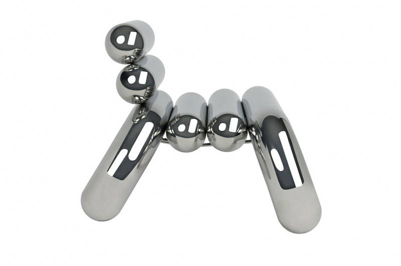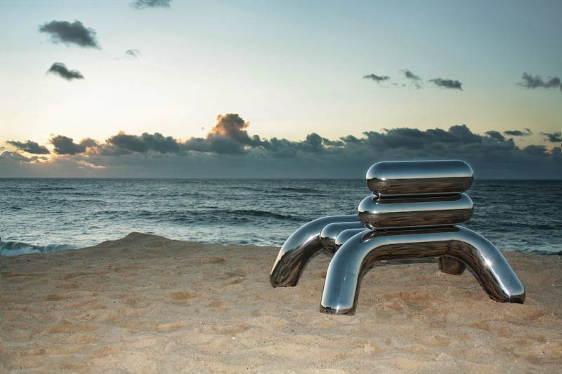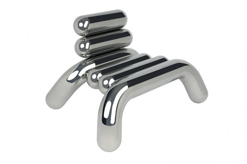 La stessa forma “a salame” caratterizza anche la poltrona e la panchetta Bibendum di Riluc, due edizioni limitate in acciaio inossidabile finito a specchio, progettate e realizzate unendo design, ingegnerizzazione e artigianato ad altissimi livelli.