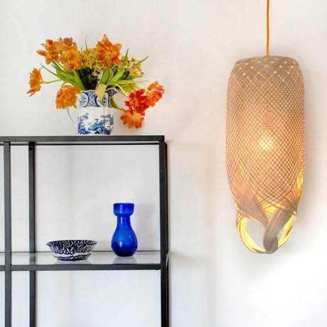 Una filosofia perfettamente riscontrata nella collezione di lampade Pren (che in lingua gallese signifiva “legno”). Ispirata da tecniche di tessitura tradizionali e caratterizzata dalle forme organiche, la linea di Pren è ottenuta intrecciando un tessuto ricavato dall’impiallacciatura del legno proveniente da fonti sostenibili. Ogni lampada è sviluppata a partire da un intricato modello a piccola scala. I paralumi così intrecciati non solo diventano un oggetto scultoreo di particolare bellezza, ma diffondono una caratteristica luce delicata. Ogni pezzo è unico essendo realizzato a mano in Galles.