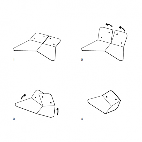 Realizzato in acciaio tagliato e verniciato a polvere, viene venduto piatto per ottimizzare i volumi e i costi di spedizione e viene facilmente piegato dall’utente in tre mosse (grazie ai tagli fustellati) e fissato al muro con viti a pressione.