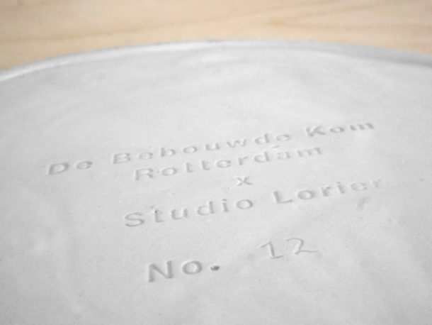 Ogni piatto è realizzato a mano nello studio di Rotterdam. Ogni singolo edificio viene realizzato con piccoli stampi autoprodotti. Successivamente viene saldato sul piatto e finito con uno smalto atossico e cotto ad alta temperatura. Il risultato è garantito anche se messo in lavastoviglie.