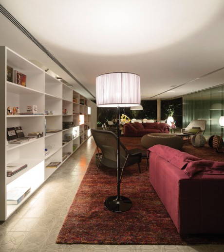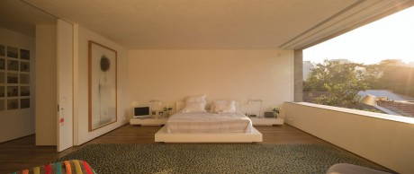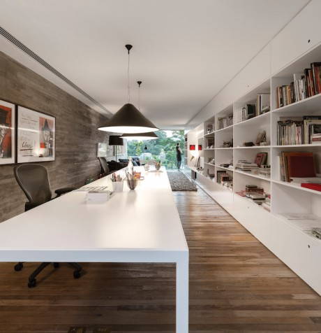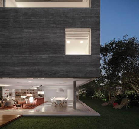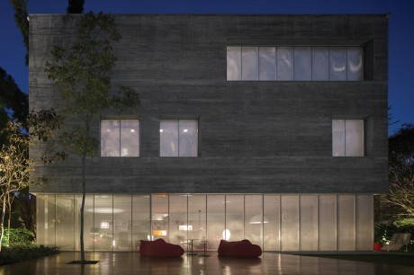 Progettata dallo Studio brasiliano MK27 sotto la guida dell’architetto Marcio Kogan, questo moderno edificio residenziale chiamato Cube House è stato immaginato come un elemento solido perforato da grandi vuoti. “È un volume monolitico che, al suo interno vuoto, contiene altri volumi”, spiega il team. Una schermatura in metallo traforato scorrere avanti e indietro lungo il perimetro del piano terra (che ospita la zona living), permettendo così di rivelare o nascondere questo spazio la vista del giardino circostante e della piscina.