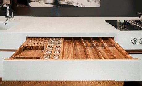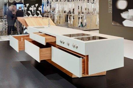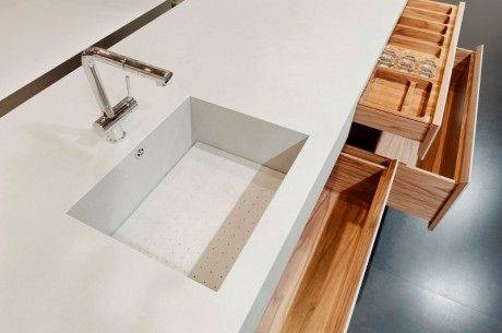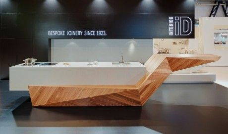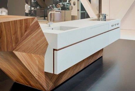 Disegnata dallo studio Interor-ID, un team di progettisti specializzato nel lavoro con architetti, interior designer e professionisti della progettazione, questa insolita cucina si fa notare per le sue forme asimmetriche e per i materiali con cui è realizzata.