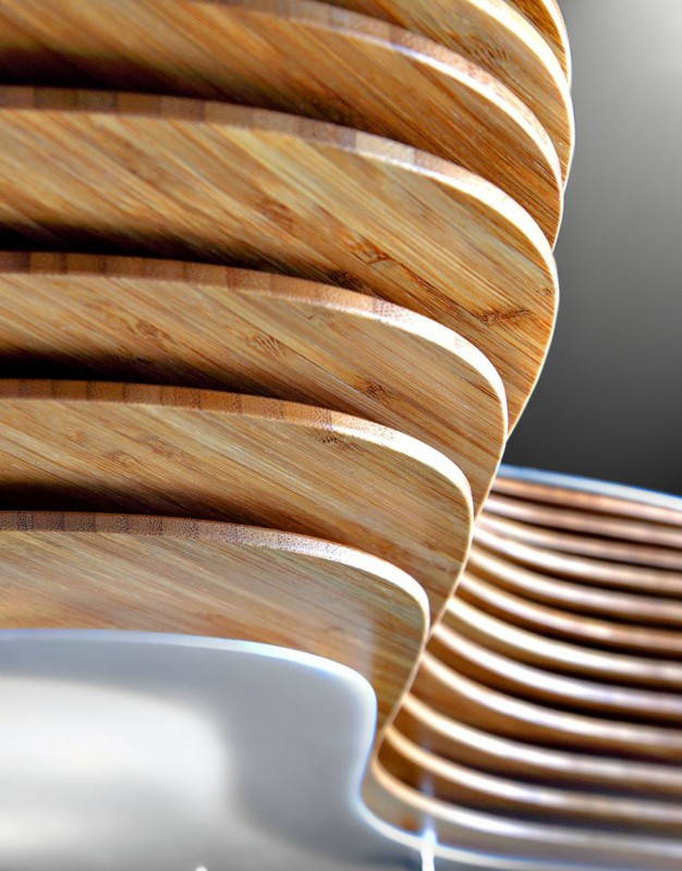 Il brand italiano Pulsar una nuova lampade a sospensione con fonte di luce a led: la “Cumulus” realizzata in lamellare di bamboo, un legno ecologico e naturale. Un design tecno-organico, come preferiscono chiamarlo i designer che con Cumulus hanno saputo creare un mix di nuove tecnologie e antichi materiali. La lampada è formata da una sovrapposizione di lamelle di legno che crea volumi, ora sinuosi ora geometrici, una nube di lamelle di legno che galleggia diffondendo una luce morbida e vellutata.