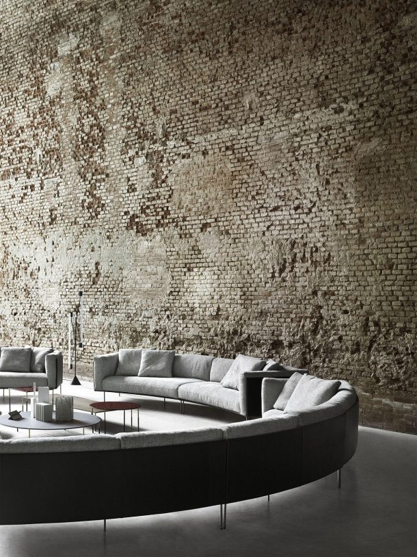 Parlando di divani curvi, non può proprio mancare Abbracci, l’imbottito firmato da Lorenza Bozzoli per Ghidini1961. Un divano dalle linee sinuose nato con l’idea di trasmettere la stessa gioia e calore di un abbraccio.
