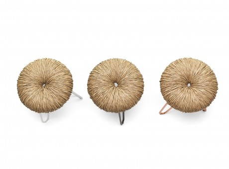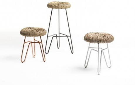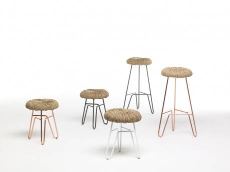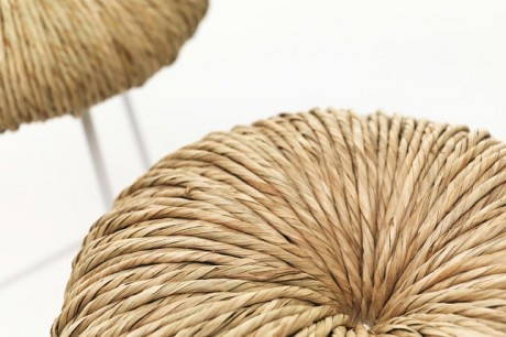 Donut mantiene viva quest’arte, sostenendo la tradizione dei nostri antenati. L’intreccio con la paglia viene interpretato in chiave contemporanea: la corda in fibra naturale è arrotolata su una base imbottita in modo da ottenere una comoda seduta. Donut è disponibile in due altezze, sgabello alto e basso in bianco, grigio, rame.