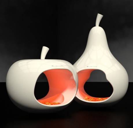 Sono stati presentati in occasione delle giornate della Design Week milanese, Eva e Olivia, due oggetti strani dalle linee pop e giocose. Si tratta di una capsule collection in soli 100 pezzi per tipologia, nata sotto il segno dell’art design e firmata da Pier Paolo Pitacco per Vanixa. Sono due frutti giganti: una mela, Eva, e una pera, Olivia, realizzati in metacrilato. Due oggetti-scultura che appartengono alla collezione LAVA di Vanixa che si ispirano al concetto di braciere contemporaneo. Entrambi accolgono al proprio interno, proprio come due bracieri moderni, dei cristalli rosati dell’Himalaya che, grazie a una speciale tecnologia brevettata, una volta “accesi” s’illuminano creando il classico effetto di lava incandescente La “lava” è in grado di generare, grazie a un sistema di raggi infrarossi, anche un piacevole tepore, un rilassante effetto sonoro (il crepitio della brace) e aromaterapico (con un diffusore di essenze). www.vanixa.com