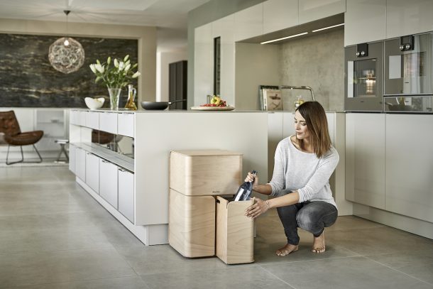 Ed entrambi i presupposti vengono rispettati: un piccolo pezzo di mobilio per la cucina che soddisfa una delle esigenze più comuni, cioè la suddivisione dei rifiuti per il riciclo sostenibile.