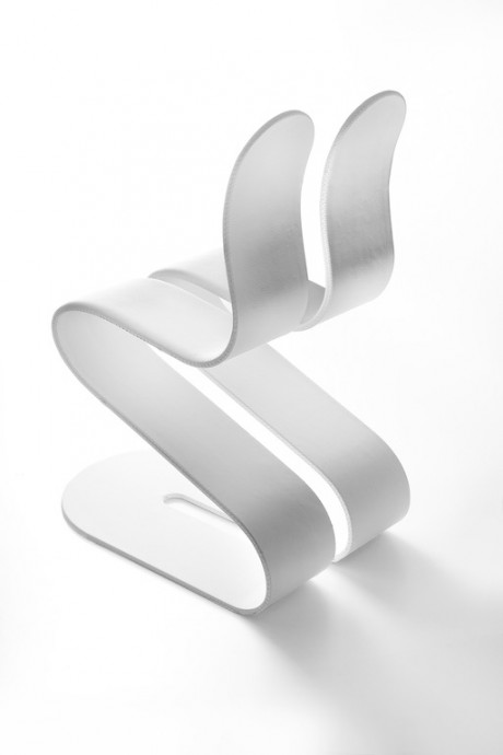 Ribbon Fluid, la sinuosa sedia creata da lamberti Decor, offre una nuova esperienza di seduta grazie al taglio centrale che ne percorre tulla la linea in senso longitudinale.