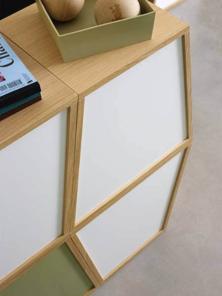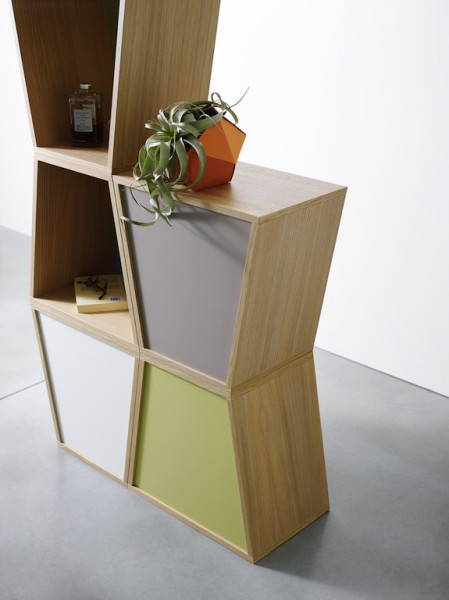 Disegnato dagli inglesi Jethro Macey & Jonathan Tibbs, Flatwork è un contenitore modulare e componibile a forma di trapezio, caratterizzato da uno stile semplice e iconico.
