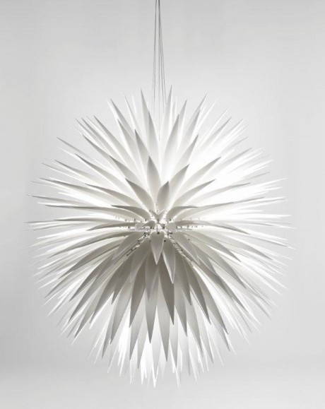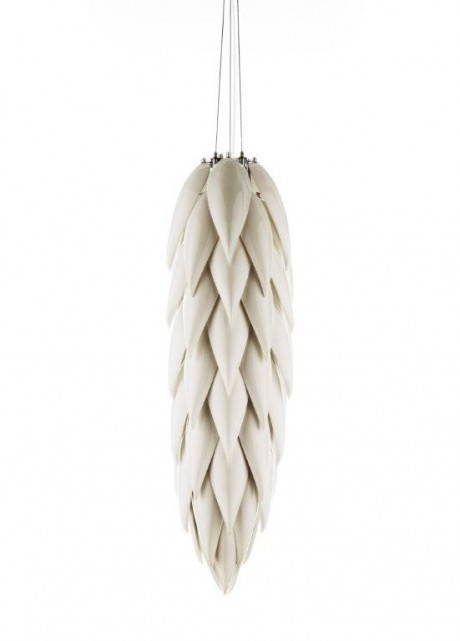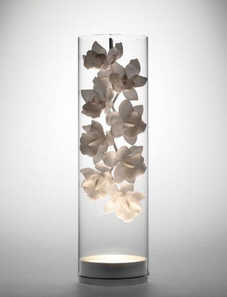 Oggi le composizioni ispirate alla natura del designer sono conosciute in tutto il mondo. Tra queste, la scenografica “White Flax”, composta da 350 foglie di ceramica fatte a mano una ad una, e il “Cymbidium Chandelier” composto da otto steli illuminati di cymbidium, un particolare tipo di orchidea.