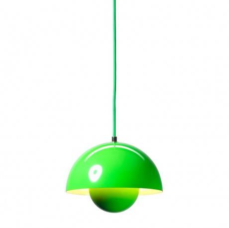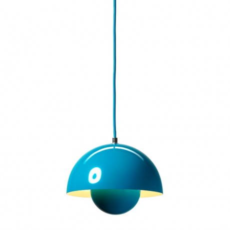Flowerpot è ora riproposta in diverse versioni (due dimensioni per la sospensione e due modelli diversi da tavolo), dall’azienda danese &Tradition; è realizzata in acciaio laccato in tantissimi colori ed è sostenuta un cavo di 3 metro tessuto. Il diametro della versione a sospensione è di 230 mm.