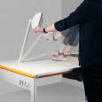 G-Chair è una seduta che, per la sua base leggermente arrotondata, si adatta alla posizione del corpo, fino ad invitarlo ad un completo relax. È disponibile in tre diversi colori: nero, bianco e rosso.