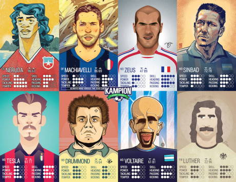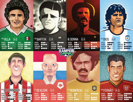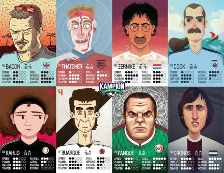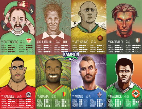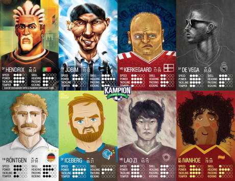 Kampion Card Game è un gioco di carte dedicato al calcio che, al posto delle solite, tristi fototessera dei calciatori, utilizza ritratti e caricature realizzati da artisti di tutto il mondo. Ogni carta raffigura un calciatore, interpretato da un illustratore diverso. Totale, fino ad ora, 150 carte di tartisti proveniente da 51 paesi e da 6 continenti. Il gioco è disponibile gratuitamente (basta fare un semplice download dei file e stamparsi le carte), ma sarà venduto anche il mazzo di carte tradizionale di qualità professionale. Si tratta di un progetto in corso: ogni settimana vengono contattati nuovi illustratori disposti a donare il loro tempo e talento per essere una parte di questo progetto. Il progetto attualmente sta raccogliendo adesioni attraverso il crowdfounding dove è possibile sostenerlo prenotando uno o più mazzi.