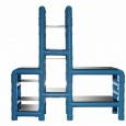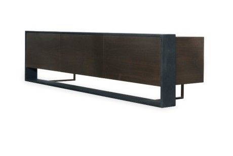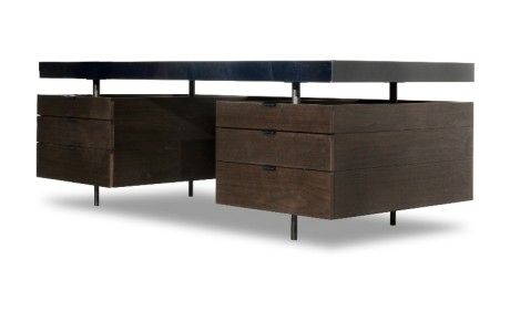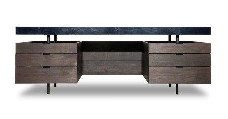 In particolare ci hanno colpito gli elementi in legno: librerie e credenze, tavoli e scrivanie. Oggetti severi, solidi e decisamente squadrati, ma che mostrano una ricerca formale interessante che parte da lontano… dai mobili pensati quasi cento anni fa, per la borghesia americana da Frank Lloyd Wright.