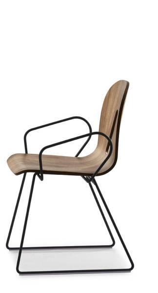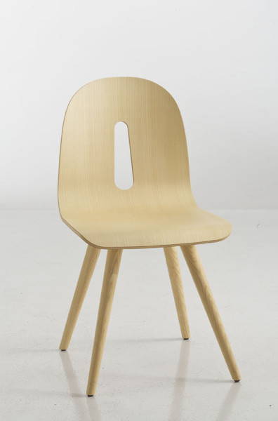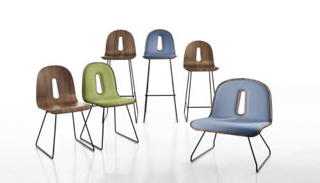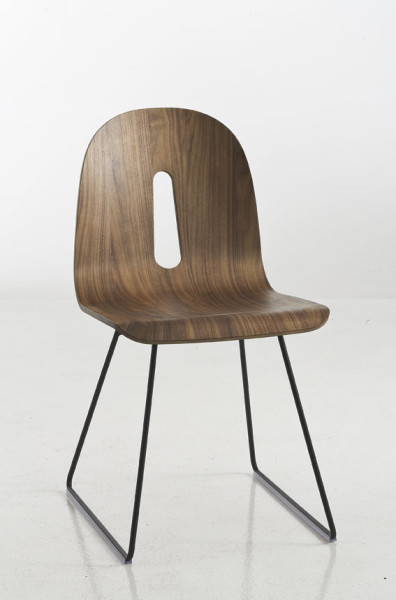 Gotham Woody è una sedia che va ad ampliare la famiglia Gotham, già presente nella produzione Chairs & More e caratterizzata dallo schienale con il foro “a goccia”, con nuove sedute, sgabelli e lounge in noce e frassino, con base in legno e slitta in metallo verniciato nero. Gotham Woody punta a valorizzare la scocca in legno con un abbinamento, più contemporaneo, con la struttura portante in metallo.