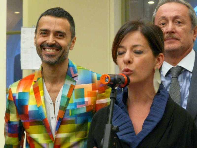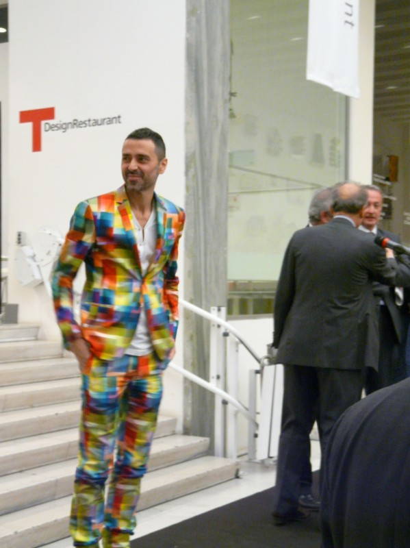 All’inaugurazione era presente il designer Fabio Novembre, che ha curato l’allestimento che sfoggiava un abito davvero “Grafico”