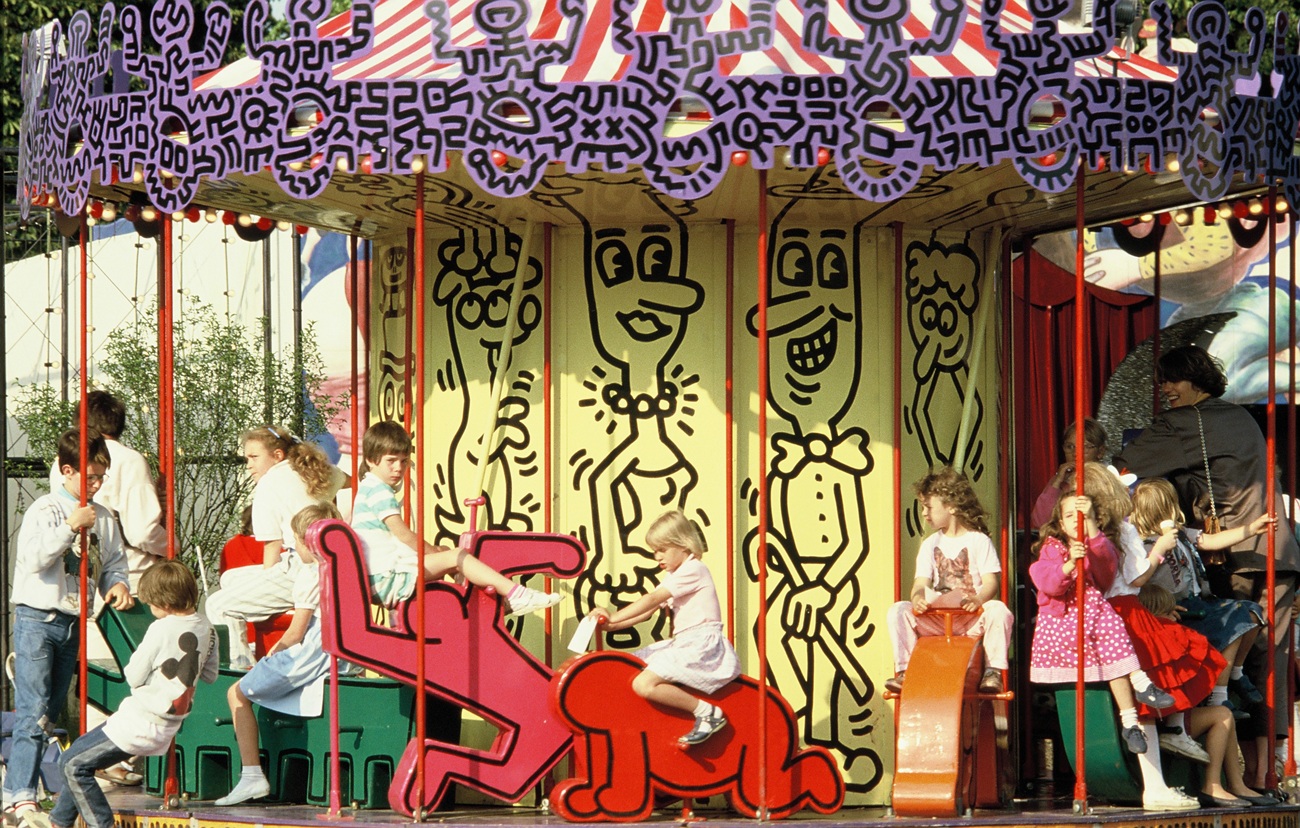 Gufram porta negli spazi domestici le sedute della giostra create da Keith Haring 37 anni fa per il luna park Luna Luna