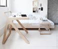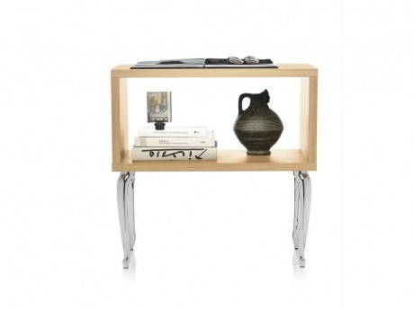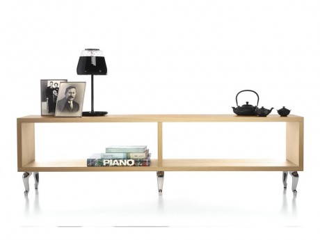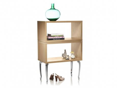 La struttura dei contenitori è in legno impiallacciato rovere nelle finiture laccato naturale, sbiancato, wengé e nero, oppure laccato nei colori bianco, rosso, arancione o nero.