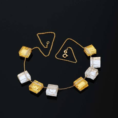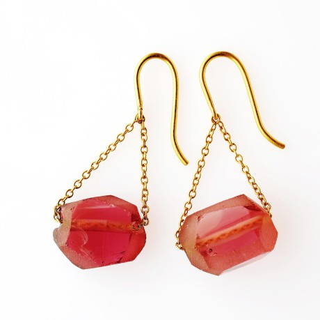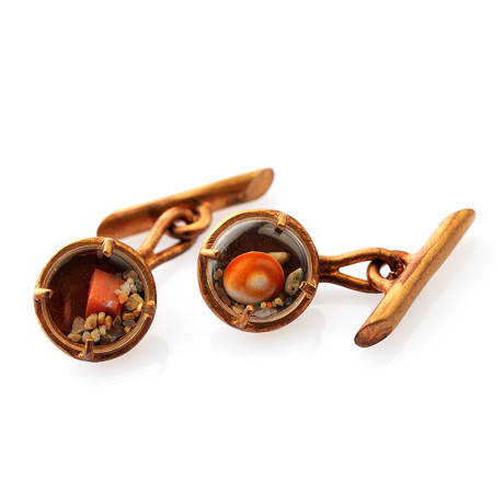 Tra le sue collezioni, ricordiamo i “Vetri di Mare”, realizzati con gli stessi pezzetti di vetro di bottiglia che da bambini si raccoglievano sulla spiaggia utilizzati come pietre preziose e incastonati in oro rosso, giallo e bianco. E poi gli “Arlecchini”, residui di mattonelle, sempre lavorate dal mare, dove la terracotta conteneva avanzi di smalto colorato che ricordano paesaggi, schegge di colori, nuvole. Ma anche “Ghiaccio” con vetri tagliati a mano a formare parallelepipedi di ogni colore, e poi “I movimenti del tempo”, in cui piccolissimi telai in oro, argento o bronzo incorniciano pezzetti minimi di vecchi orologi: griglie, rotelle, lancette ecc.