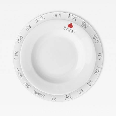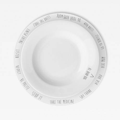 Purpose Plates sono piatti che parlano e che favoriscono le relazioni a tavola. Disegnati da Andrea Rekalidis, questi piatti traggono la loro ispirazione dai giochi per bambini: con il piatto piano si indica la persona alla quale inviare il messaggio e rotando il piatto è possibile comporre la frase: un gioco educativo per i più piccoli ed un modo per “rompere il ghiaccio” per i più grandi. Il meccanismo è semplice: il bordo del piatto piano è costellato da una serie di parole che indicano un’azione mentre il piatto fondo – più piccolo e sovrapposto a quello piano –indica la persona alla quale è destinata la comunicazione. Naturalmente esistono diverse versioni dei piatti, ognuna con scritte diverse pensate sia per i bambini sia per i grandi.