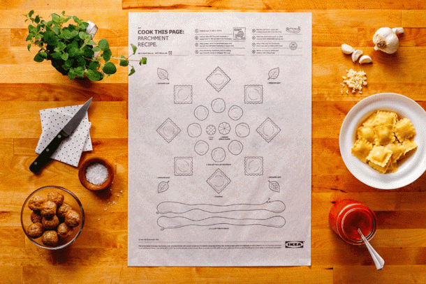 Ikea pensa a una nuova soluzione con un semplice ragionamento: la carta da forno è utile per la cottura degli alimenti, e permette di creare piatti davvero deliziosi mantenendo i profumi e il gusto puro dei cibi. Perché allora con creare l’esperienza più divertente aiutando chi è proprio imbranato in cucina (e non solo)?