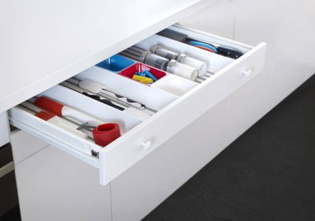 Grande è la possibilità di configurazione: mobili, ante e cassetti possono essere montati in un’infinita varietà di combinazioni. Ad esempio, i cassetti da 40 cm, aprendosi, possono contenere cassetti più piccoli per sfruttare al massimo gli spazi. Per non parlare delle infinite soluzioni per organizzare gli spazi interni, cassetti compresi…