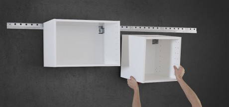 Dulcis in fundo, i mobili si installano facilmente grazie a un ingegnoso binario di sospensione. Basta attaccare il binario alla parete, agganciare i pensili e fissarli.