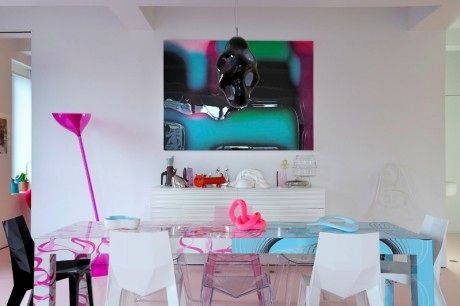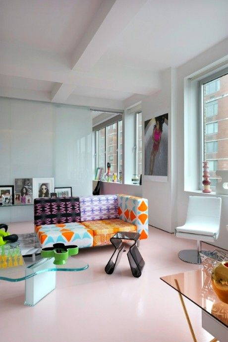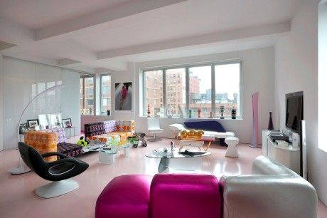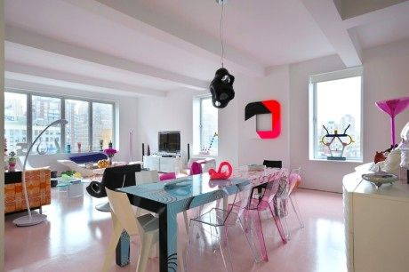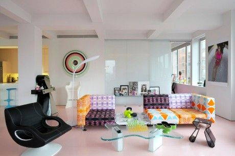 Il designer Karim Rashid ci apre il suo luminoso loft, un edificio nel quartiere di Chelsea (il cuore della vita di artisti e creativi della grande mela) ove vive insieme alla sua compagna Ivana. Una superficie di 170 mq caratterizzato dal pavimento in resina rosa e dai muri bianchi, i suoi colori preferiti.