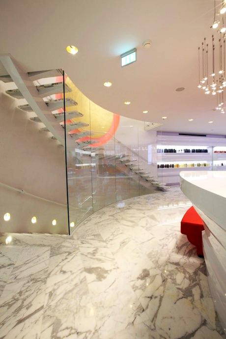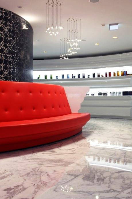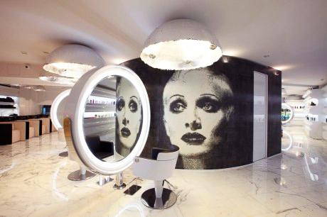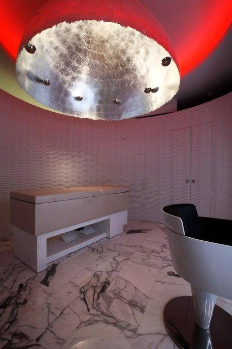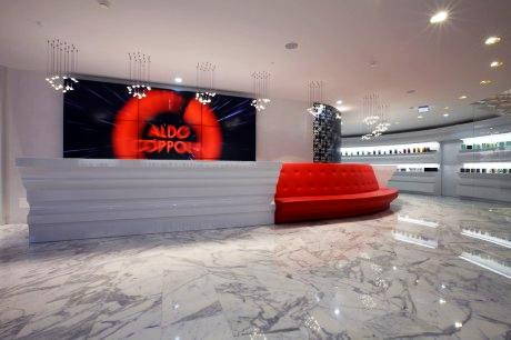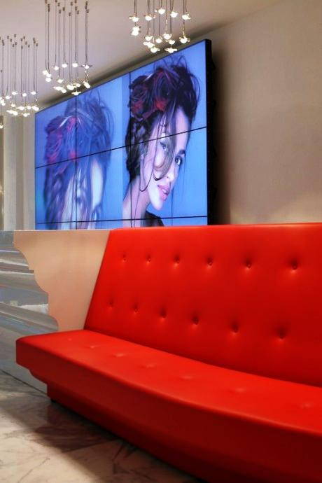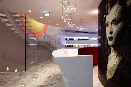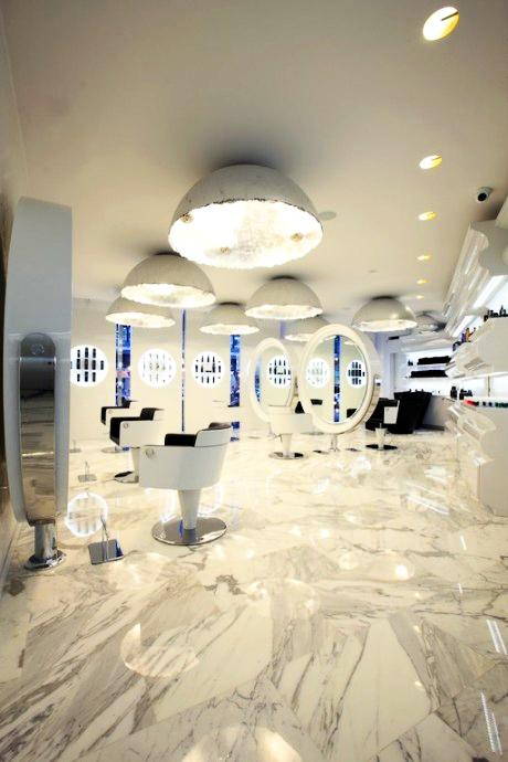 È stato appena inaugurato al pubblico in corso Europa 7 a Milano, il nuovo Atelier di Aldo Coppola, l’hair stylist milanese più famoso nel mondo. L’Atelier, una futuristica location che sembra uscire da un film di fantascienza, è illuminata dalle creazioni di Enzo Catellani e completata dagli di Marcel Wanders-Gamma&Bross. Un ambiente total-white, interrotto dalle macchie di un rosso vivace delle sedute e da grandi mosaici di Trend Group alle pareti, che nasce dalla visione creativa dell’architetto Anton Kobrinetz. Uno spazio di 1000 mq pavimentato in marmo bianco, sviluppato su tre piani e con ben 13 vetrine, nel quale l’illuminazione di Catellani & Smith riveste un ruolo speciale: accompagna gli ospiti nelle sale della Spa, tra specchi e mosaici che riproducono foto storiche di calendari Aldo Coppola-L’Oréal scattate da Fabrizio Ferri e Oliviero Toscani. Gruppi di Jackie O che pendono dal soffitto, cupole PostKrisi a dominare le sale, Pepite tutto intorno e lungo le scale dove “scorre” il magico Moon-River. Un enorme disco luminoso, E.T in foglia oro, occupa la parete delle scale per finire con la perfezione del ‘Cerchio’ della lampada Sorry Giotto. www.aldocoppola.it www.catellanismith.com