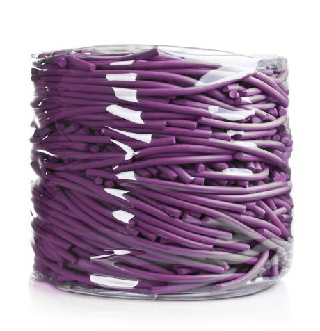 Detto, fatto. Ha deciso di racchiuderli in un involucro di pvc trasparente e di trasformare dei semplici ritagli di gomma colorata, destinati allo smaltimento, in elemento decorativo. Nasce così O Pouf by Fullspot, un pouf semplice quanto scenografico, disponibile in 20 colori e in diverse dimensioni e forme: cilindriche, rettangolari o quadrate.