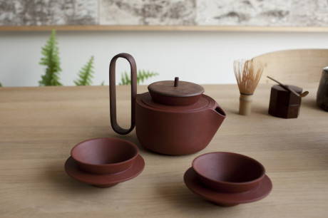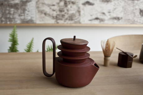 Il progetto di Aureola, una teiera in ceramica e legno prodotta da Mjölk, nasce dalla collaborazione tra il designer veneziano Luca Nichetto e la designer russa Lera Moiseeva, i quali hanno condiviso da una ricerca sui rituali di condivisione antichi e moderni che ancora oggi accompagnano molte delle relazioni sociali in numerosi paesi. In particolare, la cerimonia del té, che piú di altre unisce varie parti del mondo, dall’Asia all’Europa, passando per la Russia, dove l’infuso viene sorbito non in tazze ma in piccole ciotole o coppe senza manico. Il tea set Aureola è composto da un corpo principale, un filtro e due tazze, tutti realizzati in fine porcellana colorata in pasta con pigmenti ottenuti da polveri di metallo. Come il calore si propaga dal centro della coppa verso l’esterno, cosí l’aura di energia delle persone coinvolte nel rito di condivisione sembra espandersi in cerchi sempre piú ampi verso gli altri. Da questa immagine prende il nome il servizio da tè, che reca sulla sua superficie i segni che rappresentano graficamente questo concetto. www.leramoiseeva.com www.lucanichetto.com