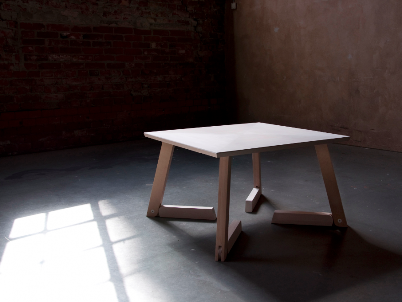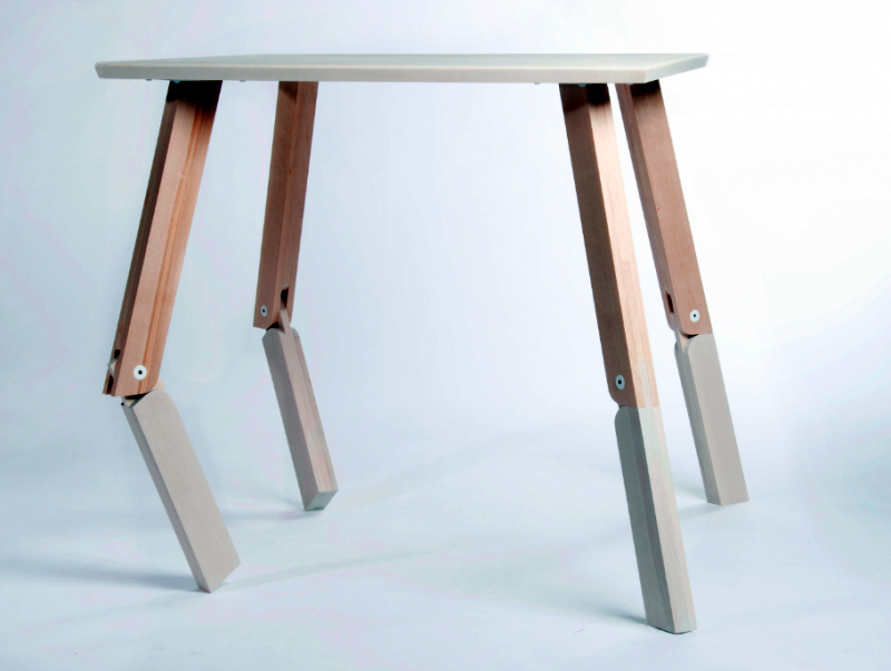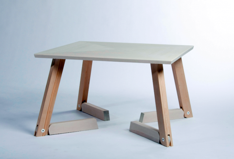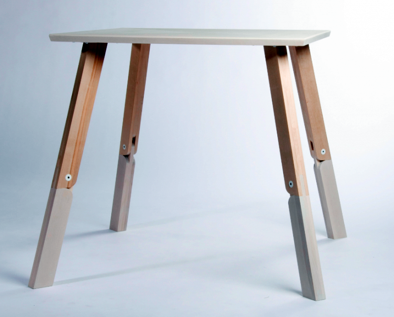 La giovane designer norvegese Caroline Olsson si è ispirata per questo suo progetto all’anatomia del ginocchio, nel quale le ossa non possono che piegarsi in una direzione. La posizione e l’angolazione delle gambe, così come i punti di incontro delle articolazioni, aiutano a mantenere il tavolo in posizione verticale e a stabilizzarlo.
