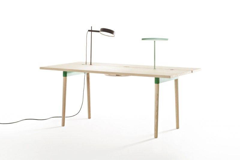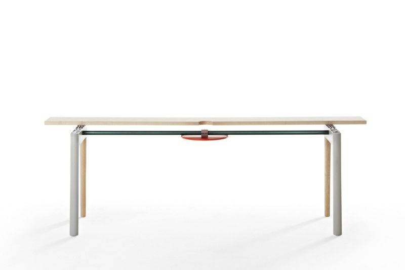 Un oggetto di uso comune come un tavolo è stato così “decostruito” in una serie di elementi semplici, ai quali viene aggiunta, a seconda delle necessità, una serie di elementi funzionali. Al centro del progetto c’è una notevole semplicità tecnica: è una fessura infatti a definire l’area di lavoro separando il piano in due parti, e al tempo stesso è questa semplice caratteristica a permettere l’alloggiamento degli accessori alla struttura.