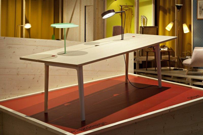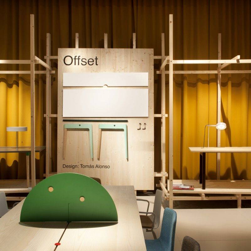 Presentato di recente in occasione del Salone del Mobile di Milano in un’ambientazione che ricorda che ricorda l’impalcatura temporanea di un backstage teatrale, Offset (design Thomas Alonso), è stato presentato come prodotto chiave dell’esposizione, con un’installazione dei elementi compositivi del tavolo, smontati, a fare da sfondo allo spazio espositivo e a ricordare l’estrema flessibilità del progetto.