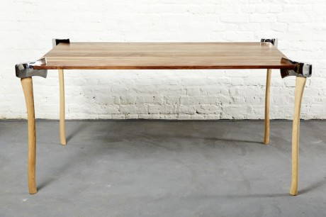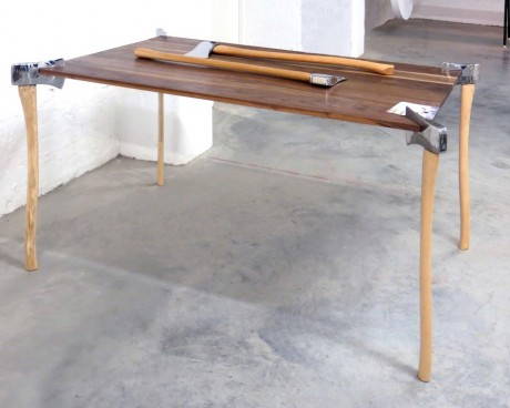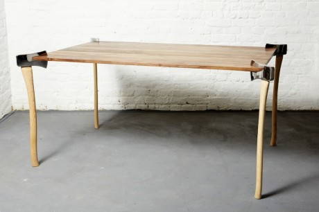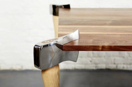 Non avrete più paura del Lupo Cattivo! Il tavolo Woodsman Axe è un oggetto curioso progettato dall’azienda inglese Duffy London e inizialmente creato per una mostra dedicata alla fiaba dei fratelli Grimm “Cappuccetto Rosso”. Il tavolo “del boscaiolo” ha anche vinto in quell’occasione il premio Peta Levi Memorial, dedicato a oggetti ispirati alle favole dei fratelli Grimm. L’idea è semblice. Un piano in legno massello sul quale sono piantate quattro asce che fanno da supporto. Dopo tale successo l’eclettica azienda inglese, che ha fatto dell’ironia e dell’oggetto insolito la propria bandiera, ha deciso di mettere il tavolo in produzione, realizzandolo in legno di diverse essenze (noce massello, rovere chiaro o frassino), tutti provenienti dal Forest Stewardship Council che garantisce la provenienza delle materie prime solo da foreste controllate. Oltre al tavolo è disponibile una console a due gambe e un coffee table più basso. Sono tutti prodotti sono fatti a mano solo con grande cura da artigiani inglesi con materiali di provenienza etica. Ph: Tom Oxley www.duffylondon.com
