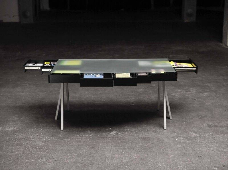 Process propone The Treasury Table, un vero e proprio “tavolo del tesoro” disegnato da Lucie Koldová: sotto il piano d’appoggio traslucido c’è un intero vano diviso in tanti cassetti diversi, così tutti gli oggetti che ingombrano la scrivania trovano spazio sotto di essa.