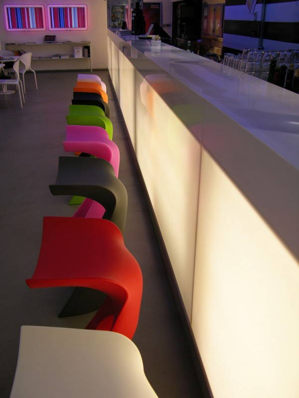 La sagoma di Koncord potrebbe ricordare quella di un tronco d’albero, con tanto di “tana per gli scoiattoli” trasformata in comoda pedana poggiapiedi. Rashid ha riversato la sua creatività su un materiale come il polietilene, il preferito da Slide per produrre complementi d’arredo dalle forme più stravaganti. Economico, riciclabile, atossico, resistente agli agenti atmosferici, il polietilene si presta alla realizzazione di oggetti che, come suggerisce la stessa azienda, non si prendono troppo sul serio.