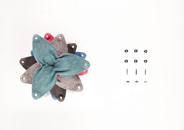 Tutti i moduli del sistema Ipari sono delle foglie in feltro modellato tramite calore, così da conferire robustezza e solidità alla piccola struttura.