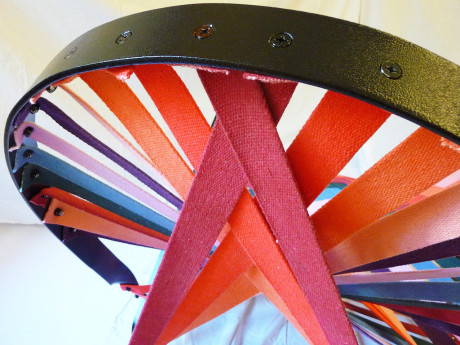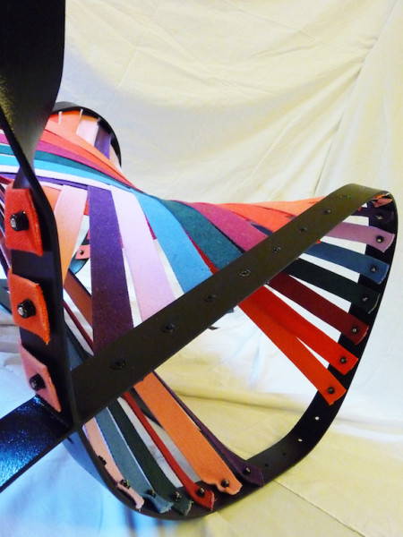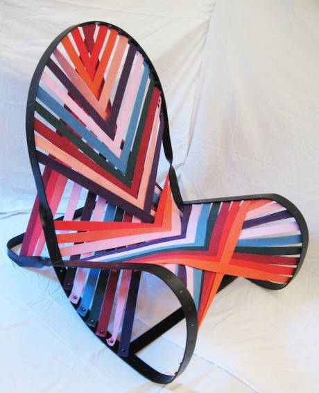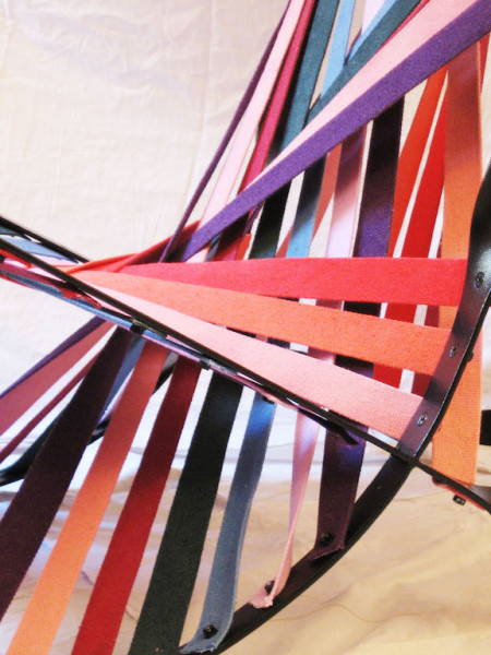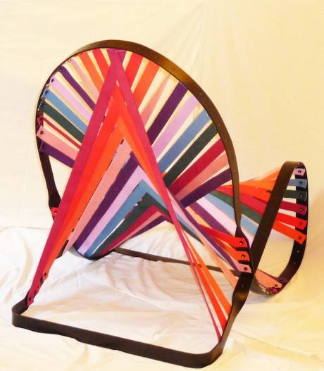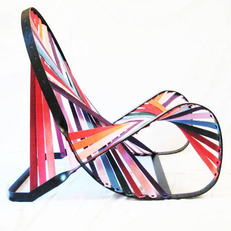 Linte è una seduta disegnata da Antonia Angelone creata per il progetto “Roberto Capucci per i giovani designer”, che nasce dalla volontà di ideare oggetti di arredamento ispirati allo stile inconfondibile e agli abiti del celebre stilista. Linte, che ha avuto una menzione speciale, si propone proprio di interpretare un abito scultura. Una poltrona adatta sia all’interno che all’esterno, che interpreta attraverso disegno e colore l’aura di fiaba, di “magico gioco” degli abiti di Roberto Capucci. Un rigoroso disegno geometrico colorato, che viene “guidato” dal preciso taglio strutturale. Il nome LINTE nasce dalla la fusione tra linea (in riferimento all’abito LINEE) e tesa, perché la poltrona è una struttura che lavora in tensione. Questa la descrizione che la designer fa del suo progetto: “Il disegno della poltrona è nato dallo studio ed osservazione in particolare di una parte del vestito, della scollatura, nel punto in cui le linee geometriche colorate si incontrano con la parte ondulata. Questo punto di fusione tra linee ha guidato il disegno delle fasce e, come nel vestito esiste complementarietà tra il taglio ed il tessuto, anche nella poltrona vuole esserci sinergia tra la struttura ed il tessuto. Nel vestito LINEE il taglio, che si può definire come il contorno privo di colore dell’abito, costituisce la struttura che circonda il disegno geometrico ; analogamente nel design della poltrona la struttura scura ondulata rappresenta come linea curva continua , un contorno al disegno formato dalle fasce di colore della seduta e della spalliera”. Seduta e spalliera sono pensate realizzate utilizzando fasce di cotone, un materiale robusto, lavabile ed economico. La struttura è realizzata con una piastra asolata in acciaio verniciato in nero