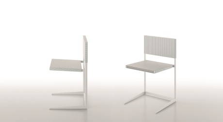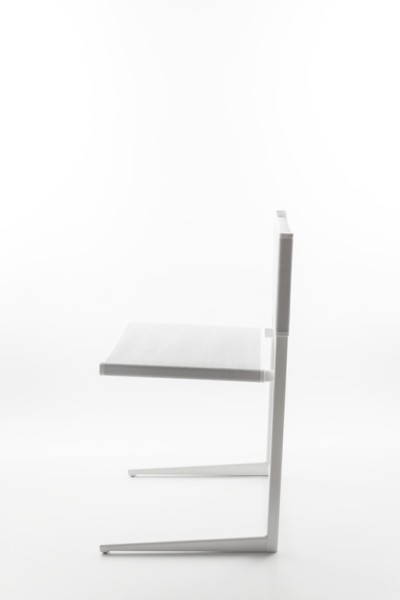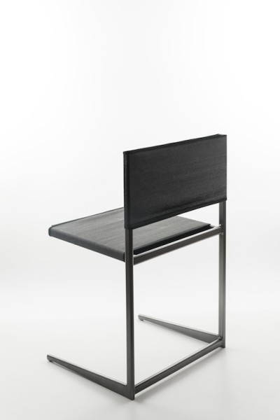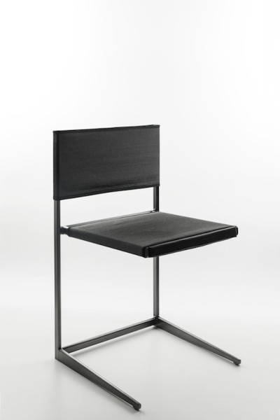 Come la nuova sedia Moritz, le cui linee richiamano quelle della classica seduta da regista ma la cui forma è semplificata ed estremizzata in un tratto pulito che sembra sfidare le regole della fisica. Tutta la struttura infatti è sorretta solo da due gambe posteriori, in tubo metallico verniciato e saldato a sezione ovale, mentre la seduta a sbalzo è realizzata, come lo schienale, con fasce elastiche altamente strutturali, in gomma naturale, che sostengono il peso adattandosi alle forme.