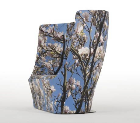 Joie de Vivre è una collezione di sedute disegnata dalla fotografa Pam Weinstock e presentata in anteprima in occasione della scorsa edizione della fiera Decorex International. La collezione, che unisce fotografia e arredamento in un solo oggetto, si compone di due elementi: un divano a due posti Magnolia caratterizzato dallo schienale alto e imponente e per il tessuto che riprende con una sorprendente qualità di dettaglio, una chiara giornata di primavera il cielo dove il cielo blu brillante filtra attraverso una magnolia in fiore. Più scultorea e avvolgente, la poltrona Hibernate raffigura i rami forti e spogli di un acero in una grigia giornata invernale. Il rivestimento prosegue anche sulla cupola della sedia, dando la sensazione di essere avvolti dai rami dell’albero. http://pamweinstock.com