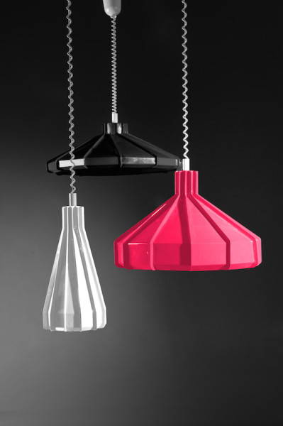 Presentata lo scorso aprile alla Milano Design Week, Twister della giovane designer Ana Tevsic è una collezione di tre lampade pendenti, realizzate in alluminio laccato in differenti colori: dai classici bianco e nero a scelte personalizzabili – anche nella variante opaca – con interni in bianco. Le tre lampade, nei modelli Small (445 mm di altezza x 200 mm di diametro), Medium (175 mm di altezza x 600 mm di diametro) e Large (380 mm di altezza x 550 mm di diametro) insieme descrivono tre momenti di uno stesso movimento di torsione sul proprio asse, come quello di una ballerina, a cui la lampada idealmente viene sottoposta, prima chiusa su se stessa, poi aperta e ampia.