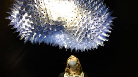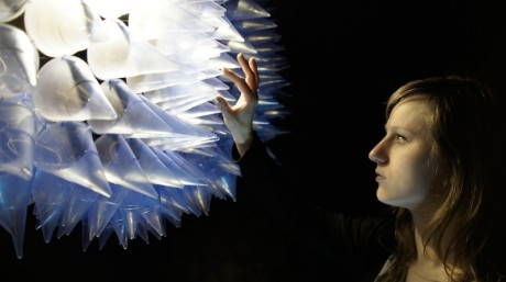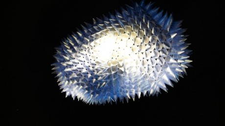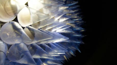 A metà strada tra la meccanizzazione di una nuvola e un grande e stilizzato porcospino, l’oggetto si caratterizza per la sua superficie interamente ricoperta da piccoli coni trasparenti che, quasi vivendo di vita propria, interagiscono tra loro e con lo spazio circostante reagendo ai suoni prodotti da corpi esterni.