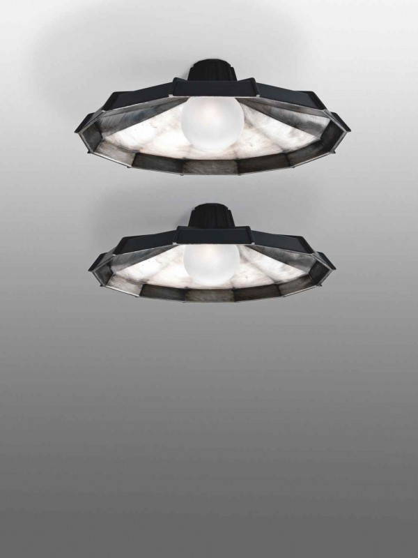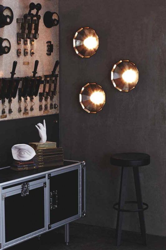 Mysterio è disponibile a parete o a soffitto e in due varianti cromatiche; una color argento anticato, che ricorda gli specchi invecchiati dal tempo, una nella finitura rame, che crea tutt’intorno un’atmosfera più calda.